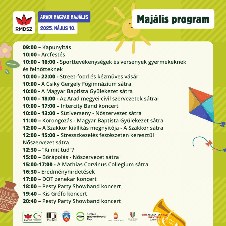 Idén május 10-én, szombaton szervezi meg az Aradi Magyar Majálist az RMDSZ Arad megyei szervezete és a Pro Identitas Egyesület. FRISSÍTÉS: A szervezők elküldték a részletes programot.