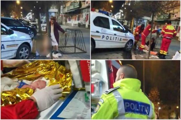 Az eset még szerda hajnalban 4 óra tájban történt a főutcán (Revoluției sugárút). Két rendőrjárőrnek feltűnt az utcán egy fürdőköpenyes nő: megkérdezték tőle, hogy mit keres ott, és csak annyit mondott, hogy nagyon fáj a hasa. A rendőrök azonnal riasztották a rohammentősöket. Időközben a helyszínre érkezett két társuk is, és megpróbálták meggyőzni a nőt, hogy üljön be az autójukba, amíg a segítség megérkezik. Ám közben már beindult a szülés.