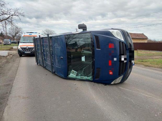 A balesetet a rendőrség szerint egy 47 éves aradi férfi okozta, aki a haszongépjárművével nekiment a másik mikrobusznak, amely Angyalkút felől érkezett.