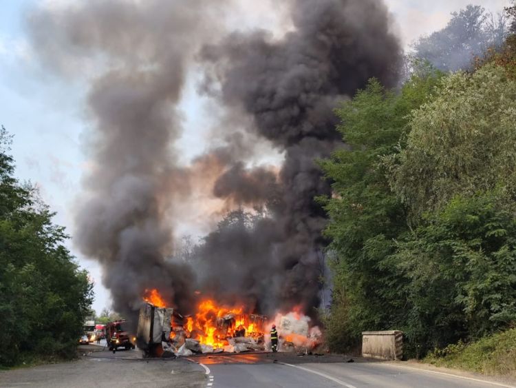Reggel negyed nyolckor riasztották a tűzoltókat egy teljes terjedelmében égő autóhoz a 7-es számú országút Arad megyei szakaszán, Tótvárad és Soborsin között. A megyei katasztrófavédelmi felügyelőség (ISU) berzovai állomása két tűzoltóautóval szállt ki a helyszínre, továbbá a megyei mentőszolgálat egyik esetkocsiját is kiküldték.