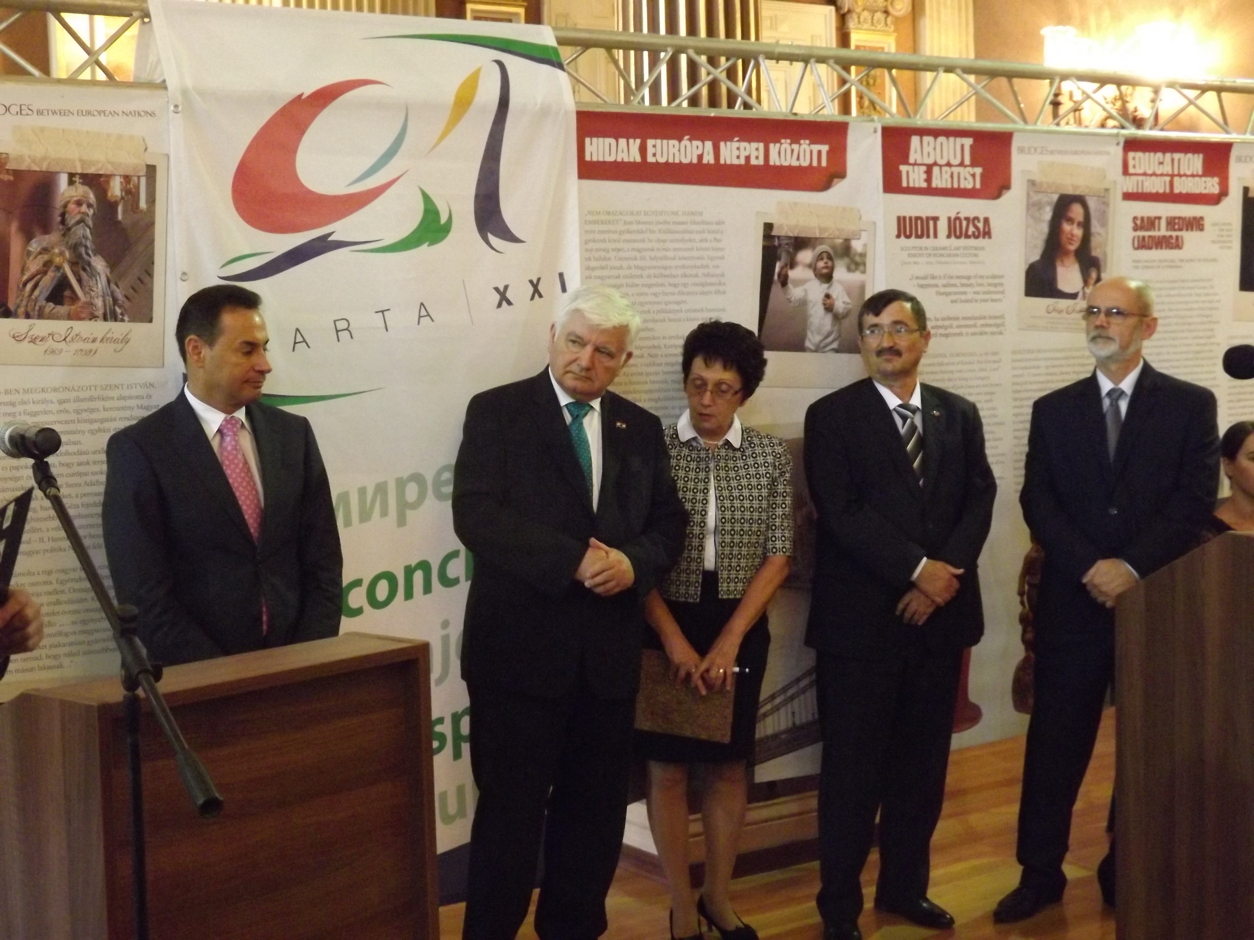 A kiállítás fontosságáról előbb a házigazda aradi polgármester beszélt, majd Surján László osztotta meg gondolatait az európai kisebbségekről, magyar-román együttélésről, viszonyról, és nem utolsó sorban ismertette a kiállítás célját, fontosságát. A kiállítás olyan magyar személyiségeket, történelmi alakokat mutat be, akik munkájukat a nemzet szolgálatába állították, életüket adták a szabadságért, saját eszméikért, az elnyomó rezsimek áldozataivá váltak: például, Szent László, Szent Erzsébet, Apor Vilmos, Bogdánffy Szilárd, Márton Áron, Julianus barát.