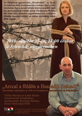 Arccal a földön a Huszadik Század! címmel versszínházi előadást mutat be a Tallián Mariann és Lázár Balázs színészházaspár az 1956-os forradalom és szabadságharc 60. évfordulója emlékére október 27-én, csütörtökön 18 órakor az aradi Jelen Ház nagytermében.