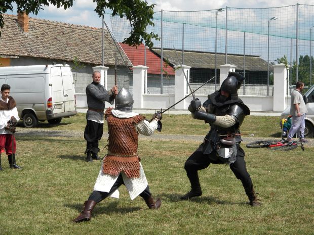 A keleti határokon dívó középkori harcművészetet, a kor székely hadi viseletét kutatja és menti át a 21. századra a székelyudvarhelyi Arany Griff Rend hagyományőrző egyesület. A Dunántúlról, Kaposvárról Székelyföldre telepedett történész, Sashalmi-Fekete Tamás által vezetett csapat a múlt hónapban a kisperegi néptánctalálkozón, majd a III. Pécskai Magyar Napokon is tartott középkori székely harcászati bemutató: az íjászat mellett többek között a kardforgatásból, lándzsahajításból, bárd használatából, ökölharcból. A rend vezetője elmondta, hogy kemény fizikai felkészültségről, állóképességről kell tanúbizonyságot tennie annak, aki szeretne a rend tagjává válni. A legtöbben az ilyen bemutatókon kapnak kedvet hozzá. A pécskai bemutató után beszélgetett Sashalmi-Fekete Tamással Pataky Lehel Zsolt. Hallgassa meg a Temesvári Rádió ifjúsági műsora számára készített interjút, illetve tekintse meg a peregi bemutatón készült kisfilmet.