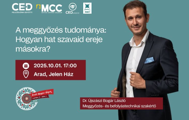 Az esemény a CEDukáció Roadshow, a Matthias Corvinus Collegium és a Romániai Magyar Közgazdász Társaság aradi fiókszervezete közreműködésével valósul meg, közös célként támogatva a vállalkozók és a helyi közösségek fejlődését.