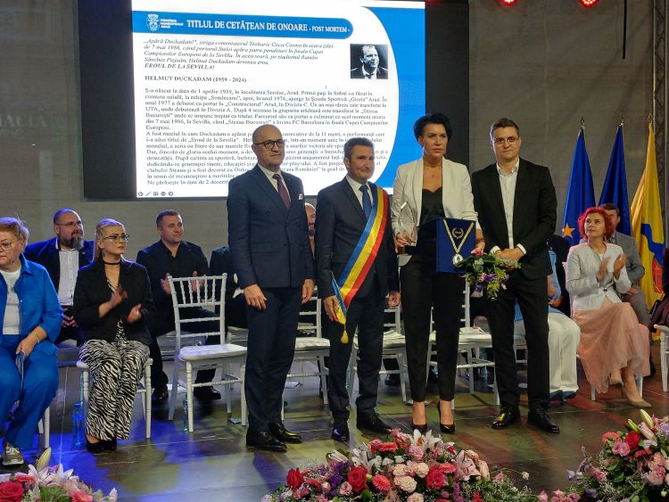 Szintén díszpolgári címet kapott – post mortem – Helmut Duckadam, a szemlaki sváb-magyar családban született néhai labdarúgókapus, a „sevillai hős”, aki a Steauával 1986-ban megnyerte a Bajnokcsapatok Európa Kupáját, de pályafutását Aradon kezdte. Duckadam tavaly decemberben 65 évesen hunyt el. Kitüntetését özvegye, Alexandra Duckadam vette át.