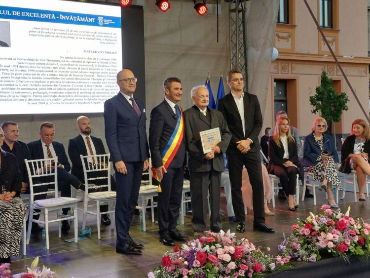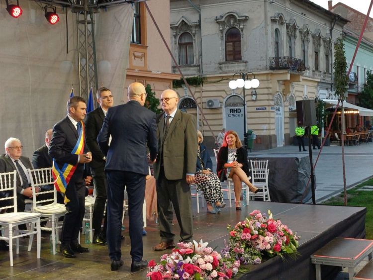 Matekovits Mihály nyugalmazott pedagógust és Doba István közgazdászt úgynevezett Kiváló-polgár oklevéllel tüntették ki. A magyar díjazottakat Pataky Lehel Zsolt szólaltatta meg az ünnepség végén. Hallgassa meg a Temesvári Rádió Magyar adása számára készített összeállítást: