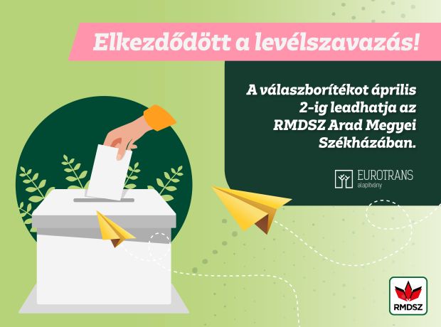 Március 15-től megkezdték a szavazólapokat tartalmazó borítékok kézbesítését. Aki megkapta, az összeállított és lezárt levélszavazatot leadhatja az RMDSZ Arad megyei szervezetének székházában, vagy átadhatja a helyi RMDSZ-tisztségviselőknek legkésőbb április 2-ig!