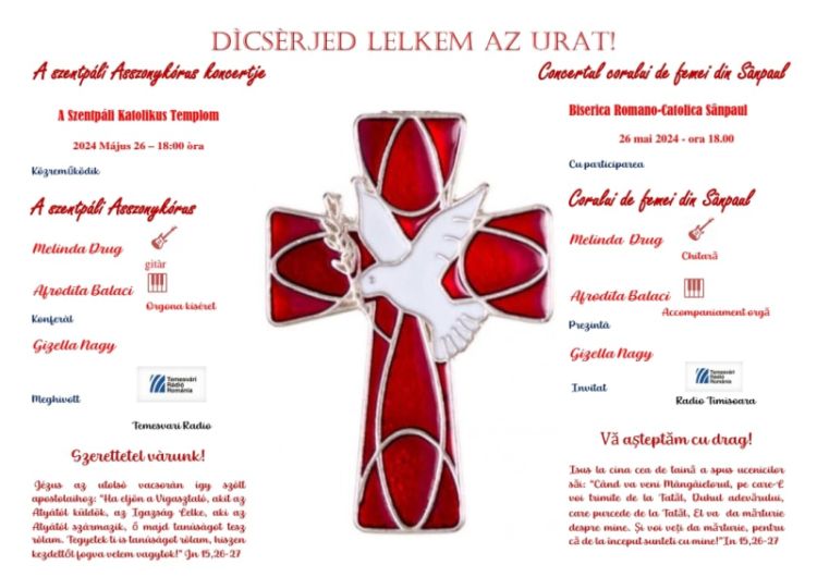 A Szentpáli Nyugdíjasklub Asszonykórusa egyházzenei koncertet tart a helyi római katolikus templomban május 26-án, vasárnap 18 órától.