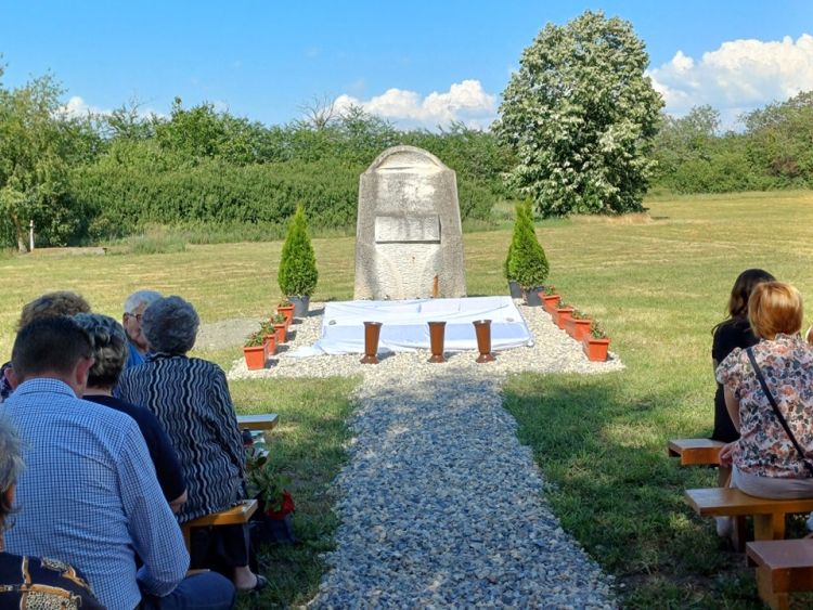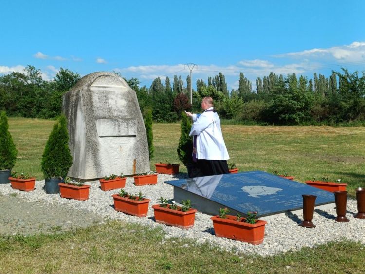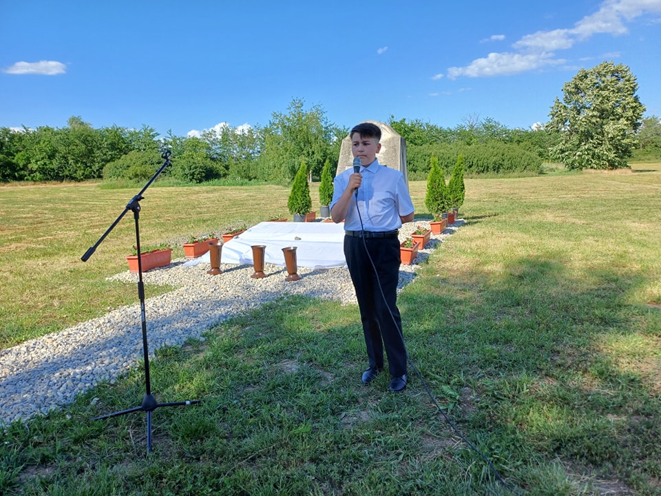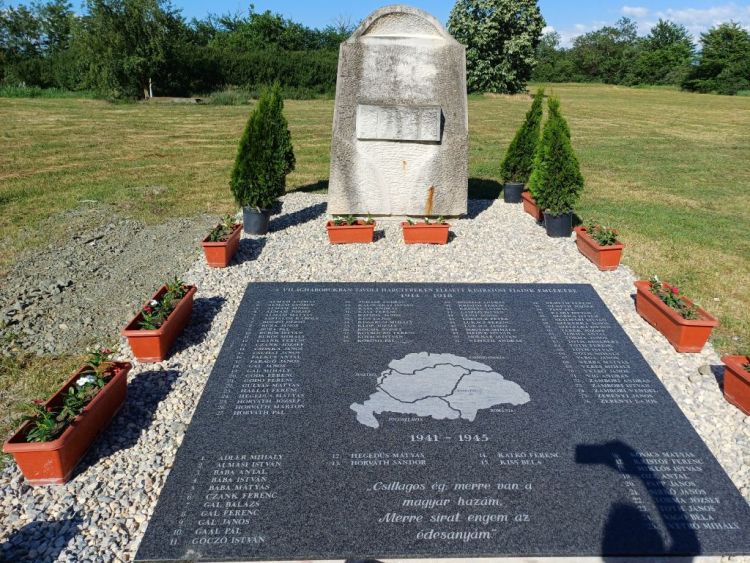Az emlékmű előtt egy gránit tábla található, ami 76 első világháborús és 25 második világháborús hős nevét tartalmazza, és a történelmi Magyarország térképét ábrázolja. Pataky Lehel Zsolt is jelen volt az ünnepségen. Hallgassa meg a riportot, amely a Kossuth Rádió Határok nélkül című műsora számára készült: