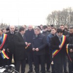 DSCF2218[1]A csípős szél ellenére több százan vettek részt ma délelőtt Pécskán az új Maros-híd avató ünnepségén, s ezzel a beruházással a helybeliek 120 éves álma teljesült. Az avatószalagot Nicolae Ioţcu megyei elnök, Antal Péter pécskai és Ilie Cheşa székesúti polgármester vágta el, majd nyilatkoztak ennek gazdasági, társadalmi fontosságáról. A híd megépítését az Arad Megyei Tanács banki hitelből finanszírozta, s két évvel a Tehnodomus céggel aláírt kivitelezési szerződést követően a hídon már közlekedni lehet. De csak a hídon, mert a 7-es főúthoz, illetve a Németszentpéterig vezető utak csak 2014 nyarára készülnek el, s csak ekkortól rövidíti majd meg az utat Temes megye irányába. És kínál rövidebb közlekedési lehetőséget Pécskára a munkavállalóknak a Maros túloldaláról, de a gazdák számára is egyszerűbb lesz a kereskedés. Az avatáson jelen volt még, többek között Cosmin Pribac prefektus (aki nem kapott szólási lehetőséget), Traian Igaş szenátor, Bognár Levente, az RMDSZ Arad Megyei Szervezetének elnöke, Bölöni György és Sipos György megyei tanácsosok, Zágoni Szabó András pécskai tanácsos, s nem utolsó sorban Király Árpád marosi főesperes, Czeglédi Ferenc pécskai plébános. A híd fontosságáról Antal Péter polgármester nyilatkozott az Aradi Híreknek: