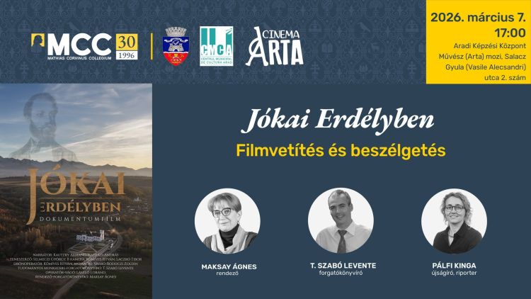- Időpont: március 7., szombat, 17 óra, helyszín: aradi művész- (Arta-) mozi, Vasile Alecsandri (régi Salacz Gyula) utca 2. szám.