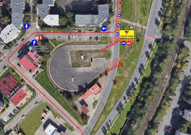 - majd ismét balra a meglévő betonútra, amely visszavezeti a forgalmat a N. Titulescu sugárútra.