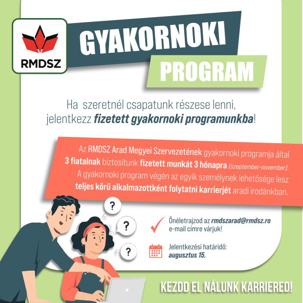 Az RMDSZ Arad megyei szervezete fizetett gyakornoki programot hirdet.