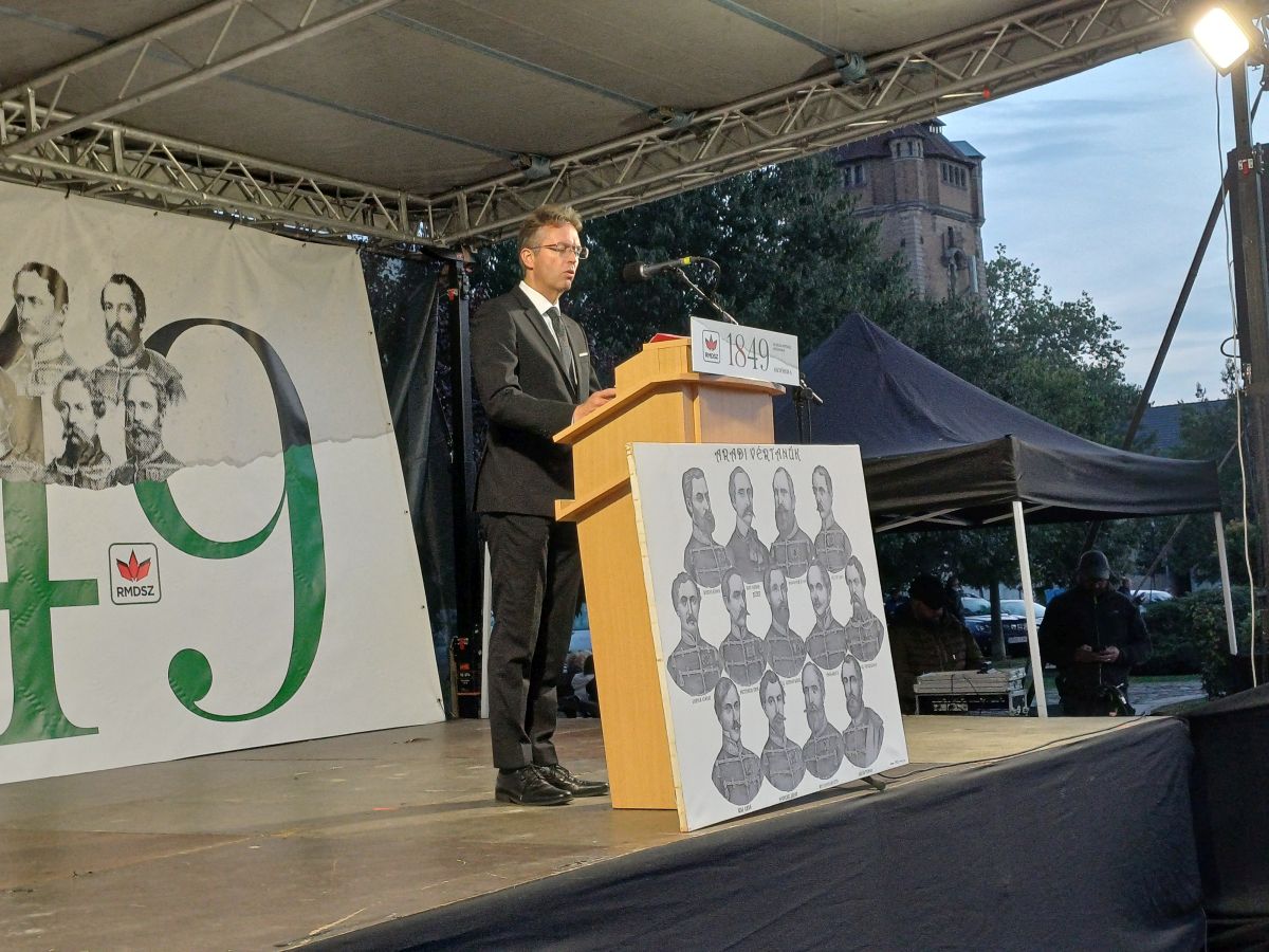 „Mi készen állunk-e megtenni nemzetünkért azt, ami itt és most ránk váró feladat? Készen állunk-e áldozatot hozni, önmagunka felülmúlni, ha pedig szükséges küzdeni a magyar nemzetért, készen állunk-e megvédeni? (…) Ha a válaszunk nem, méltatlanok vagyunk Batthyány Lajos miniszterelnök és az aradi 13-ak örökösei lenni”