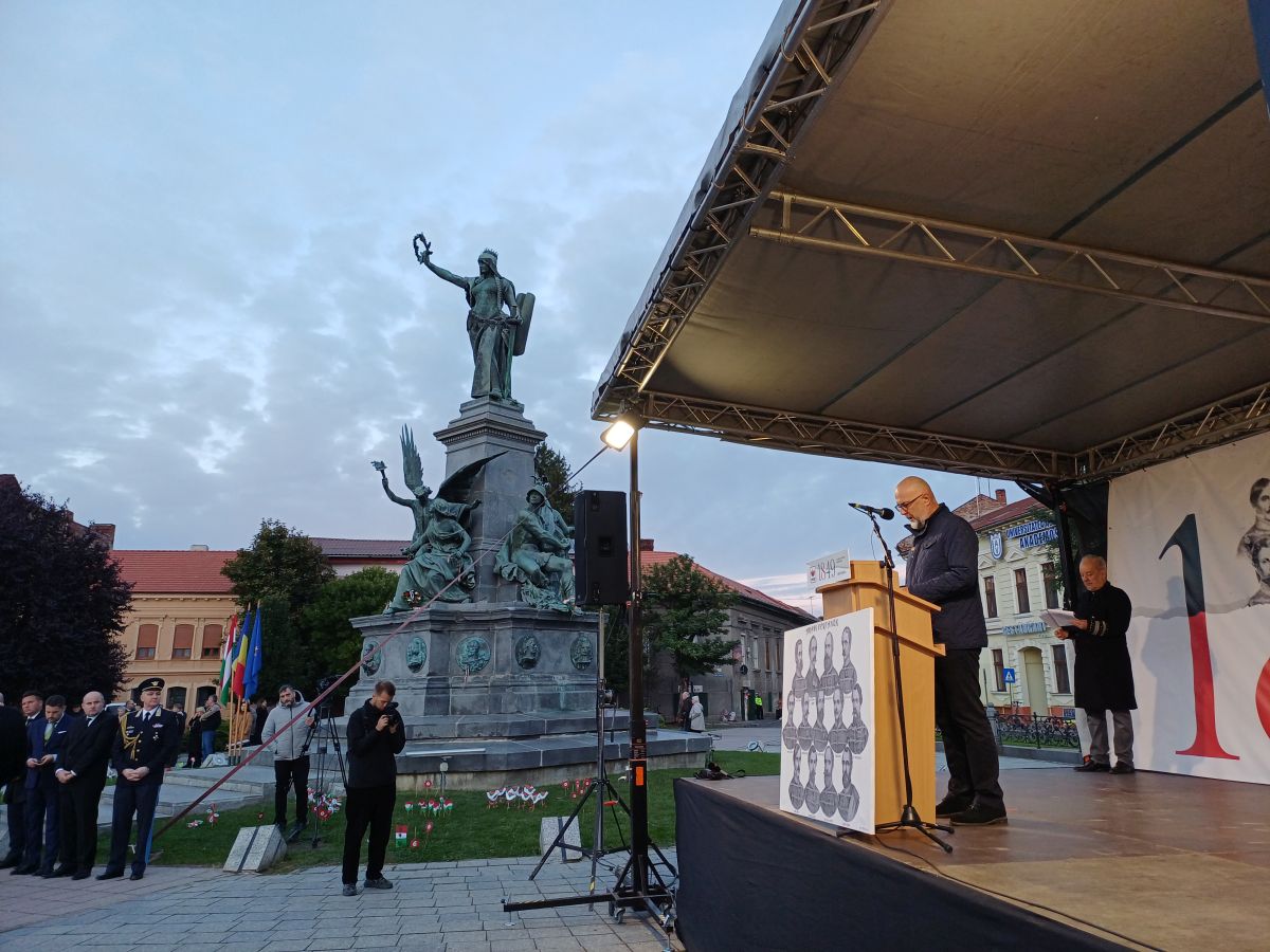 „A történelem paradox igazságszolgáltatása, hogy a félelemre épített elrettentésből egy nemzet máig ható bátorsága született, a megfélemlítésből közös tartás, a hallgatásra ítélt szájról pedig a szabadság szava csendül föl minden év október 6-án” – mondta. Szerinte Arad a vérbefojtott szabadság gyászhelye, ugyanakkor a szabadság örök tanúsága, a közösségi egység és cselekvés helyszíne is – annak bizonyossága, hogy