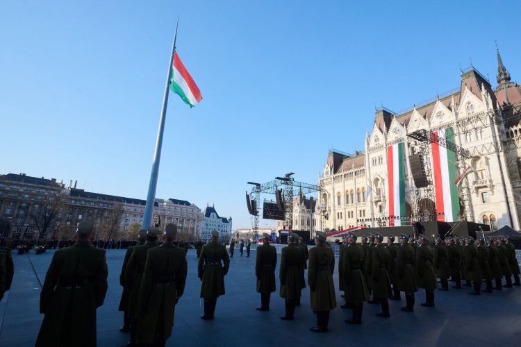 Március 15. – Felvonták a nemzeti lobogót az Országház előtt