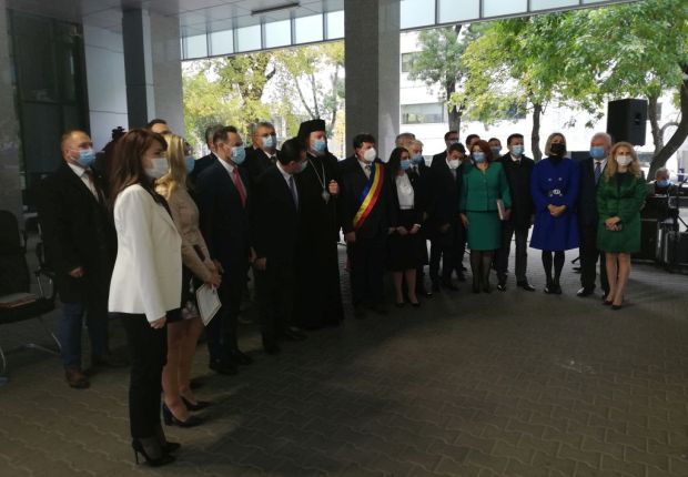 A két eseményre várt Ludovic Orban miniszterelnök késése miatt háromnegyed órával a kitűzött időpont után kezdődött a Kultúrpalota hangversenytermében az aradi képviselőtestület tagjainak eskütétele, amit rövid időre megszakítottak, amikor a kormányfő, aki egyben a Nemzeti Liberális Párt (PNL) elnöke is, megérkezett a terembe.