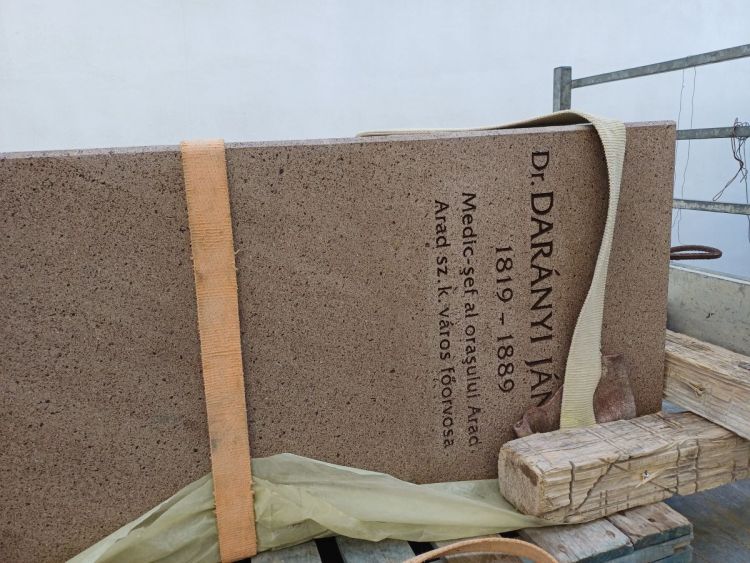 Elkészült az aradi Darányi János-szobor talapzata, és az andezit tömbből faragott posztamenst csütörtök délután elhelyezték a magyar református bölcsőde udvarán.