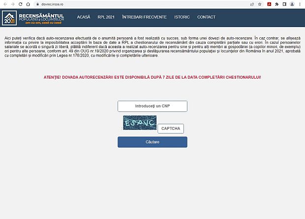 Az érvényességet a dovrec.insse.ro oldalon kell ellenőrizni a kérdőív beküldését követő legtöbb 7 nap után – mutat rá a Népszámlálás.ro sajtóközleménye.