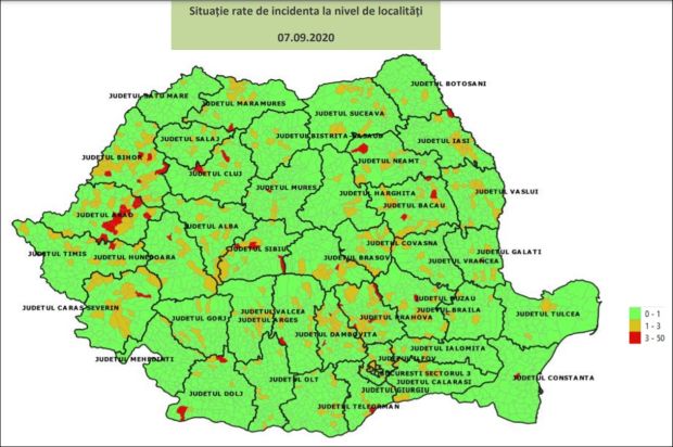 A fertőzési ráta alapján egyetlen megyeszékhely sincs a 43 vörössel jelölt település között, ahol zárva maradnak az iskolák, de a kétmilliós Bukarestben és számos nagyvárosban 1 és 3 ezrelék között van a kéthetes fertőzési ráta, az iskolák tehát nem fogadhatják valamennyi diákjukat az órákon, egy részüknek online oktatást kell szervezniük.