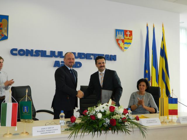 Együttműködési megállapodást írta alá csütörtök délután Nicolae Ioţcu, az Arad Megyei Tanács és Tiffán Zsolt, a Baranya Megyei Közgyűlés elnöke. A partnerség mintegy folyománya a két megyeszékhely, Arad és Pécs intenzív testvérvárosi kapcsolatának, és a két megye történelmi borvidékeinek is köszönhető: az önkormányzatok vezetői a Szőlő- és Bortermelő Régiók Európai Szövetségében (AREV) kerültek közelebbi kapcsolatba. Mint elhangzott, a bor és a borturizmus lehet az együttműködés alappillére, de a felsőoktatás, a közművelődés terén, valamint a kkv-szektorban is szorosabbra fűznék a kapcsolatokat, illetve keretet teremtenének az új intézményi kapcsolatok kialakításának. Pataky Lehel Zsolt Tiffán Zsolt elnököt és Bognár Leventét, Arad alpolgármesterét kérte mikrofon elé az esemény végén. Hallgassa meg a Temesvári Rádió számára készült interjúkat!