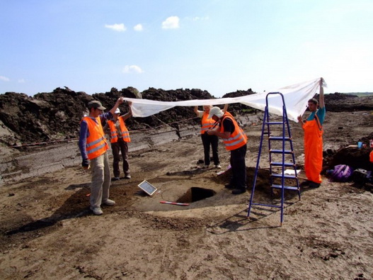 A régészeti tehermentesítéskor Ság mellett jelentős bronzkori településre bukkantak, feltételezik, hogy a vajköpülő edény is az itt feltárt fazekasműhelyben készült. A munkálatok során rengeteg edénymaradványt, tűzhelyet találtak, de rábukkantak, mint említettük fazekasműhelyre, valamiféle „szeméttelepre”, ahova falmaradványokat hordtak és más használati tárgyakra, eszközökre. Az anyag feldolgozása még folyik, a leletek egy része Temesvárra, a Bánság Múzeumába, egy része Aradra került. Az ásatásokon húsz régész dolgozott.