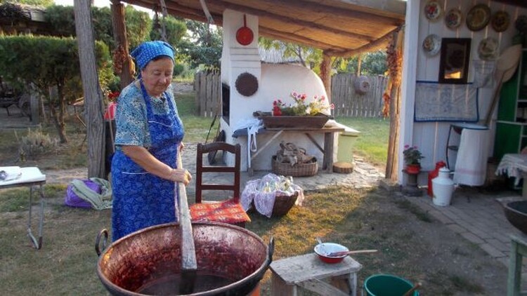 Párja, Tóth Piroska – az tájházat működtető egyesület elnöke – és segítői már délelőtt nekiláttak a lekvár- és ciberefőzéshez a kertben megtermett szilvából.