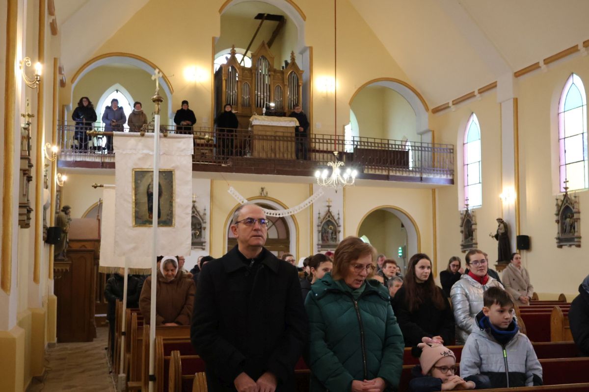 A ministránsok mellett Deák Bálint enangélikus lelkipásztor, Kapor János római katolikus plébános és Brittich Erzsébet képzőművész | Fotó: Pataky Lehel Zsolt