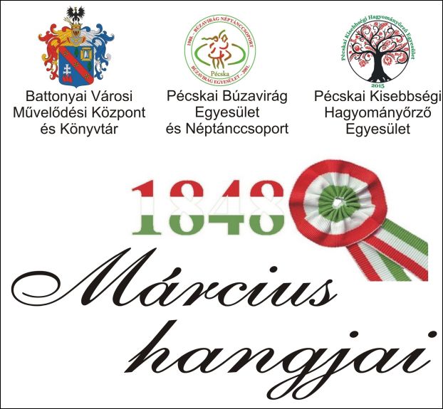 A battonyai Városi Művelődési Központ és Könyvtár, a pécskai Búzavirág Egyesület és Néptánccsoport, valamint a Pécskai Kisebbségi Hagyományőrző Egyesület szeretettel meghív minden pécskait március 19-én, vasárnap 18 órai kezdettel a pécskai művelődési házba, az 1848–1849-es magyar forradalom és szabadságharc emlékére bemutatott műsorra. A Március hangjai elnevezésű közös program keretében néptáncot, színielőadást és citeraműsort láthat a közönség.