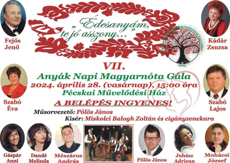 A Pécskai Magyar Kisebbségi Hagyományőrző Egyesület a záhonyi Kádár Zsuzsa társszervezésében „Édesanyám te jó asszony...” címmel magyarnóta délutánt tart április 28-án, vasárnap 15 órától, a Doru Ioan Petescu Művelődési Házban.