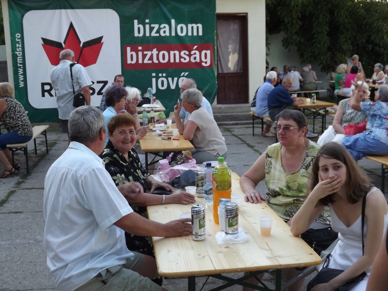 Anna-napi mulatságra hívta ma délutánra az RMDSZ Arad Megyei Szervezete az érdeklődőket. A látottak alapján, a hívó szót fiatalabbak, idősebbek meghallották, mert a székház udvarán felállított asztalok hamar megteltek. Többek között Bognár Levente megyei elnök, Faragó Péter ügyvezető elnök, Bölöni György megyei tanácsos fogadta az érkezőket. Kellemes, baráti beszélgetések alakultak ki az asztaloknál, a hangulat pedig, köszönhetően Czank Miklósnak és társainak, hamar emelkedni kezdett. A mai rendezvény egy újabb lépést jelentett a szövetség tervéhez, miszerint a székház az aradi magyarság háza kell legyen.