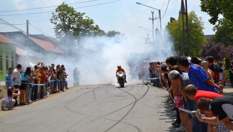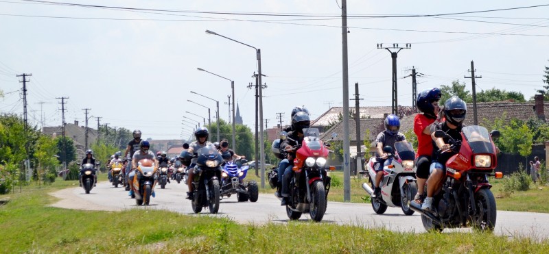 A szervezők pontosak voltak és szombaton 13 órakor elindult a pécskai Kiserdőből a motoros felvonulás a 2-es, 3-as és 1-es utcákon, a felvezető rendőrautó után négykerekű terepmotoron robogott a főszervező Stani Ribovici és Antal Péter polgármester.