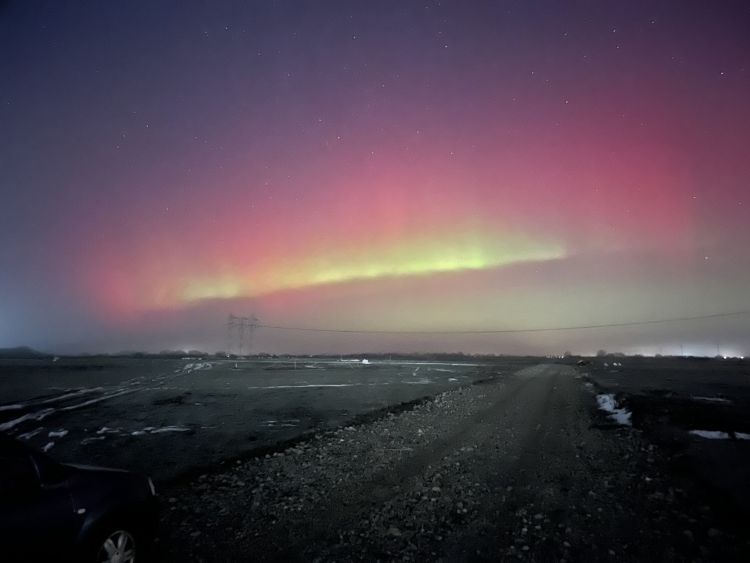 A fotókon a jelenség rendkívül erős és intenzív, ugyanakkor szabad szemmel is jól látható volt: a hullámzó zöld fények halványan zöldesen világító, felhőszerű »függönyökként« jelentek meg, miközben a háttérben erőteljes vörös derengés volt megfigyelhető. Időnként fényoszlopok is kirajzolódtak, méghozzá meglepően magasan, nagyjából 25 fokkal a horizont felett. A tavaly májusi attrakciónál is jóval fényesebb és erőteljesebb volt – a zöld szín a csillagos égbolt előtt szinte világított. Egészen lenyűgöző élmény volt itt, Aradon