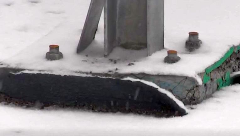 Két hónap sem telt el azóta, de a friss beruházáson máris látványos jeleit látszanak a gyors ütemű romlásnak. A január kemény fagy, majd olvadás, illetve ezek váltakozása nyomán