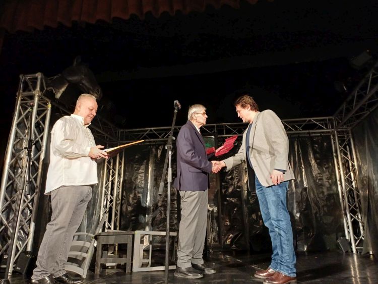 A Kölcsey Egyesület alelnöke és elnöke, Fekete Károly és Berecz Gábor adja át a díjat Harsányi Attilának | Fotó: Pataky Lehel Zsolt