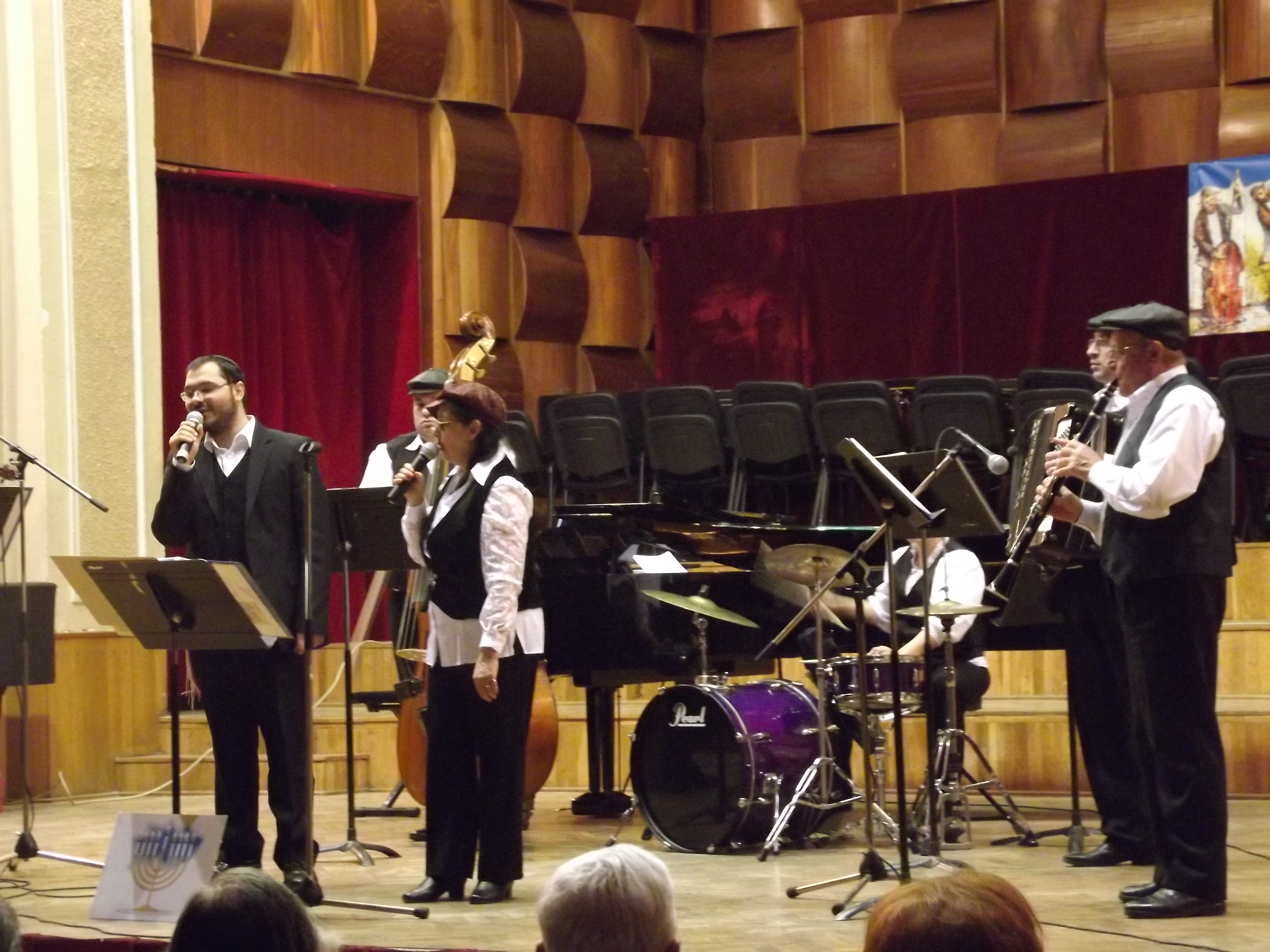 A Hanuka utolsó napjára időzítette az Aradi Zsidó Hitközség a kolozsvári Mazel Tov klezmerzene-együttes ma esti fellépését a Kultúrpalotában. A meghívottakat, nézőket Ionel Schlesinger, a hitközség elnöke köszöntötte, s többek között elmondta, hogy Arad évszázadok óta egy soknemzetiségű, multikulturális város, ezért most ők is megmutatnak egy részt a zsidó kultúrából. De beszélt a Hanuka ünnepéről, ennek fontosságáról. Külön megköszönte Bognár Levente alpolgármesternek, hogy segítségével a polgármesteri hivatal támogatta a koncertet, amelyre a belépés ingyenes volt. De nem csak ezért telt meg zsúfolásig a Kultúrpalota koncertterme, hanem mert a klezmer muzsika igazi különlegesség itt, ritkán van alkalmuk az aradiaknak ilyen színvonalon előadott zsidó zenét hallgatni. A koncertre a hitközség meghívta a többi vallási felekezet képviselőit is. A kolozsvári Mazel Tov először lépett fel Aradon, a ma esti koncertből egy rövid részlet itt tekinthető meg: http://youtu.be/R4EcqDWqOo8