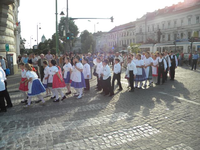 Az idén kétnaposra tervezett Nemzetiségek Fesztiválján pénteken tartották meg a népviseleti felvonulást és a néptáncbemutatót. A közel 300 résztvevő a városházától a színházig, majd onnan visszasétált, végül a volt Salacz, a mai Eminescu parkban adtak elő néptáncokat. Az érdeklődők közben a hagyományos termékek standjainál nézelődhettek, vásárolhattak, kóstolhattak mézeskalácsot, pécskai kenyeret házi zsírral és lila kenyérrel, vagy éppen nagylaki szlovák aranygaluskát. Tekintse meg a felvonuláson és a parkban készített videóinkat, illetve képeinket, és hallgassa meg a Pataky Lehel Zsolt által a Temesvári Rádió számára készített riportot!