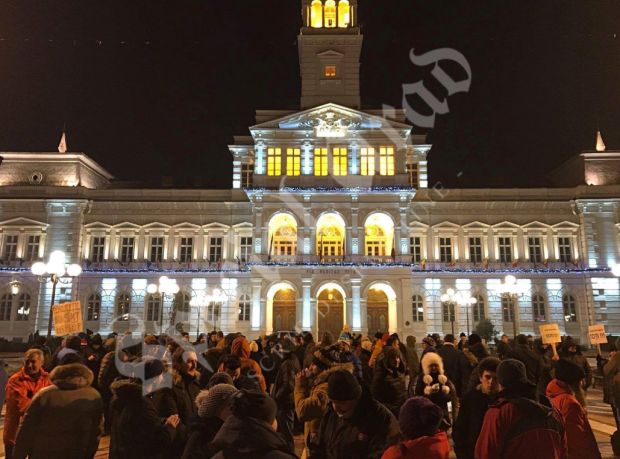 A városháza előtti téren néhány százan fejezték ki tiltakozásukat ily módon a szociáldemokrata és liberális-demokrata kormánykoalíció szándéka ellen, amellyel a börtönök túlzsúfoltságára hivatkozva közkegyelmet biztosítana többek között a korrupciós ügyben elítélt politikusainak, főleg a kormányfői babérokra törő Liviu Dragnea pártelnöknek.