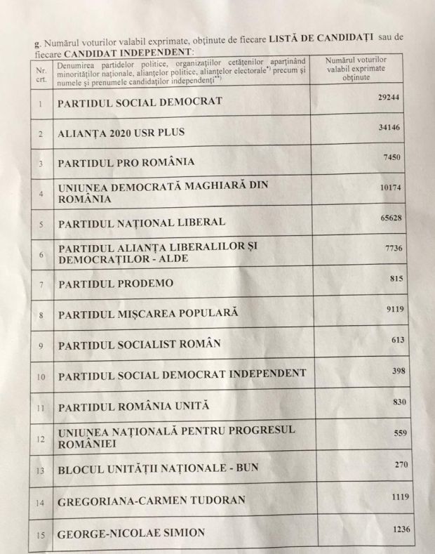 A PNL 27 százalékos eredménnyel végzett a szavazás élén, a második helyezett nagyobbik kormánypártot, a Szociáldemokrata Pártot (PSD) csak hajszál választja el a szintén ellenzéki Mentsétek meg Romániát (USR) és a Szabadság, Egység és Szolidaritás Pártja (PLUS) választási szövetségétől. A 13 ezer szavazatnyi különbség – szakértők szerint – „elolvadt” volna, ha a külföld szavazókörzetekben mindenki élhetetett volna a választási jogával.