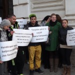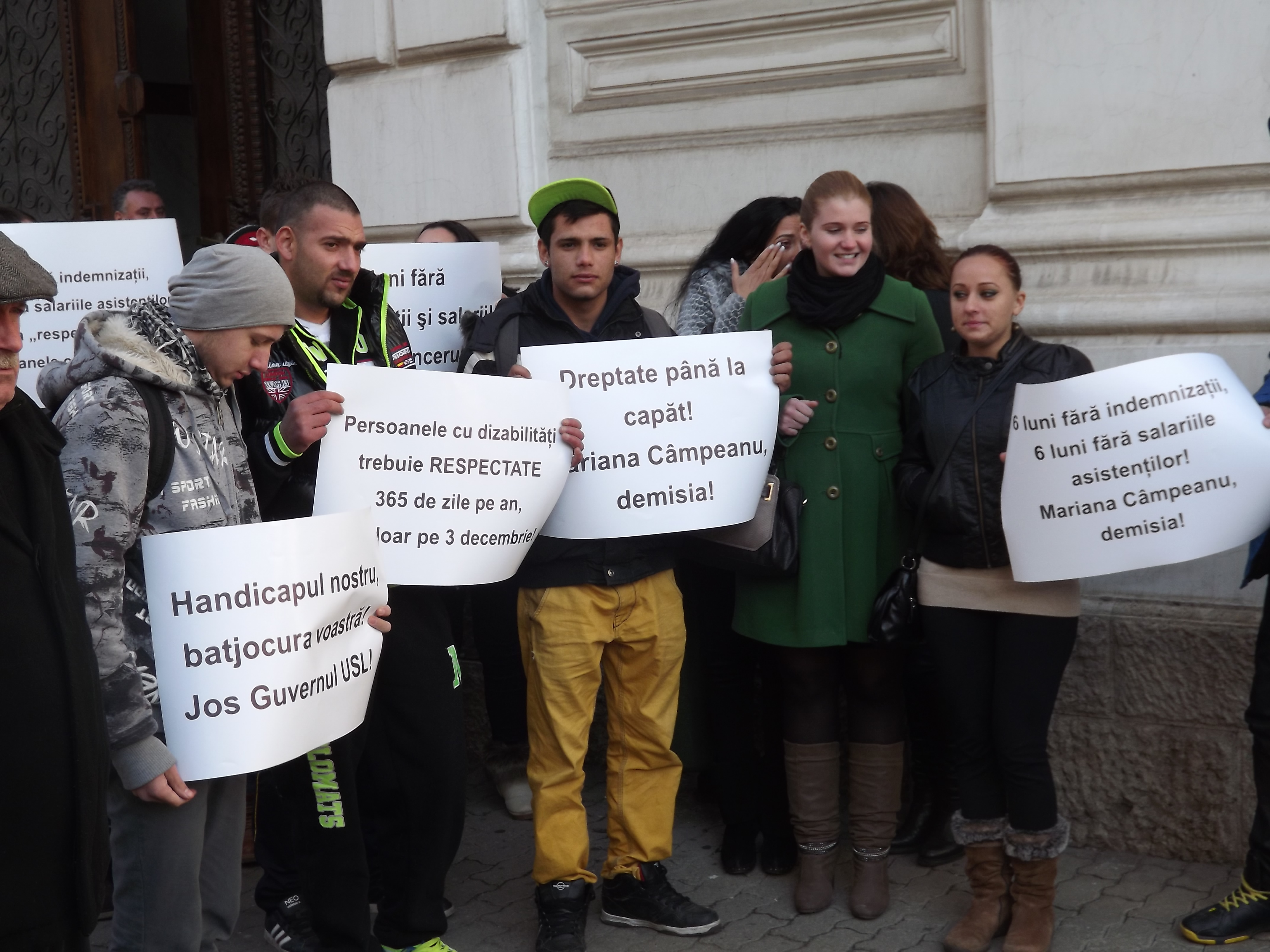 Ma 12.00 óra után Aradon fogyatékkal élők egy csoportja és kísérőik tüntettek a prefektúra előtt, mert ez utóbbiak hat hónapja nem kapták meg járandóságukat. A fogyatékkal élők gondozói igényelhetnek fizetést, amit az állam a központi költségvetésből finanszíroz és a helyi polgármesteri hivatalokon keresztül fizetik ki. Amióta az USL-kormány tavaly hatalomra került, a kifizetések egyre inkább csúsznak, s az érintettek ma elmondták, hat hónapja nem kapták meg pénzüket, ami komoly gondokat okoz a fogyatékkal élők gondozásában, hisz az a kevés pénz is legtöbbjüknek nagyon sokat számít.