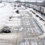 Románia 18 déli megyéjére – az ország csaknem felére – terjesztette ki a narancssárga riasztást a meteorológiai szolgálat a szombat hajnal óta tomboló hóvihar miatt, másik hét erdélyi és moldvai megyében pedig sárga riasztás van érvényben vasárnap estig. Szinte az egész országban havazik, de a legtöbb gondot az erős, óránként 70-80 kilométeres sebességű szél okozza. A hókotrók munkája szinte hiábavaló, a szél azonnal visszahordja a havat az útra. A gyakori hóátfúvások és a helyenként 20 méter alá csökkent látótávolság miatt négy főutat lezártak az ország déli részén. Szombat reggel néhány órára lezárták az A1-es autópályát a Bukarest–Pitesşti szakaszon. Több órán keresztül szünetelt a közlekedés egy baleset miatt a tengerpart felé vezető A2-es sztrádán is.