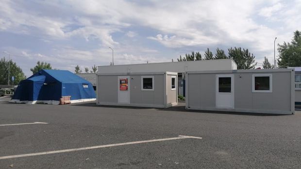 A határellenőrzési ponttól 50 méterre található létesítményben a Johnson & Johnson által kifejlesztett Janssen-vakcinát adják be az igénylőknek, azt, amelyikből egy adag is véd a koronavírus ellen.