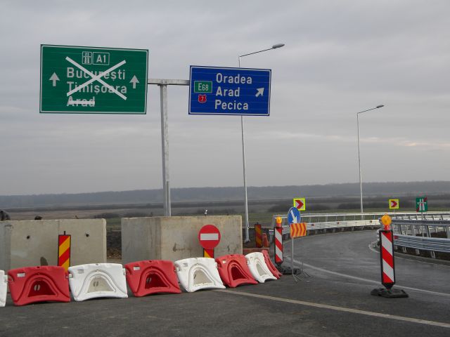 A magyar–román határtól nem egészen Aradig autópályán lehet már haladni. Igaz, sok a forgalom- és sebességkorlátozás – helyenként csak 100 km-es óránkénti a megengedett maximális sebesség, továbbá az Arad–Nagylak irányba csak a 7,5 tonnánál kisebb súlyú járművek használhatják –, mert a munkálatokat még nem fejezték be teljesen, de az út járható. Pataky Lehel Zsolt a Temesvári Rádiónak készített tudósítást erről.