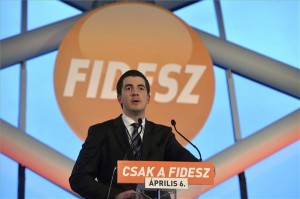 Kocsis Máté, a Fidesz kommunikációs igazgatója sajtótájékoztatót tart a párt eredményváró rendezvényén