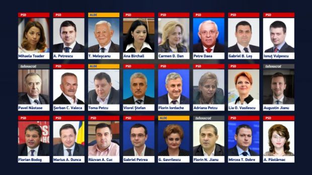A kormány tagjai továbbá két PSD-s tárca nélküli miniszter: Mihaela Virginia Toader, aki az európai alapokért, és Ana Birchall, aki az európai ügyekért felel.