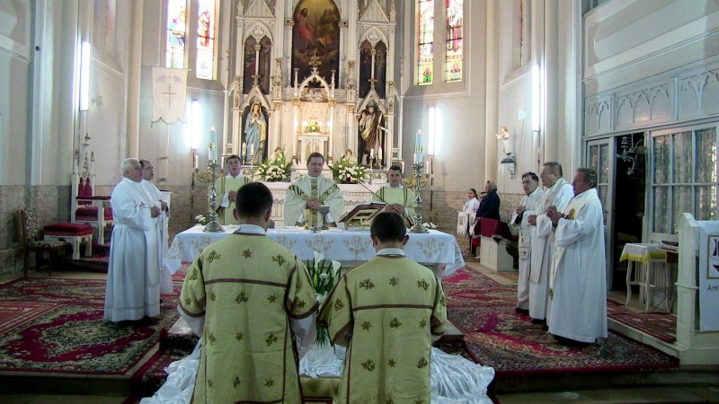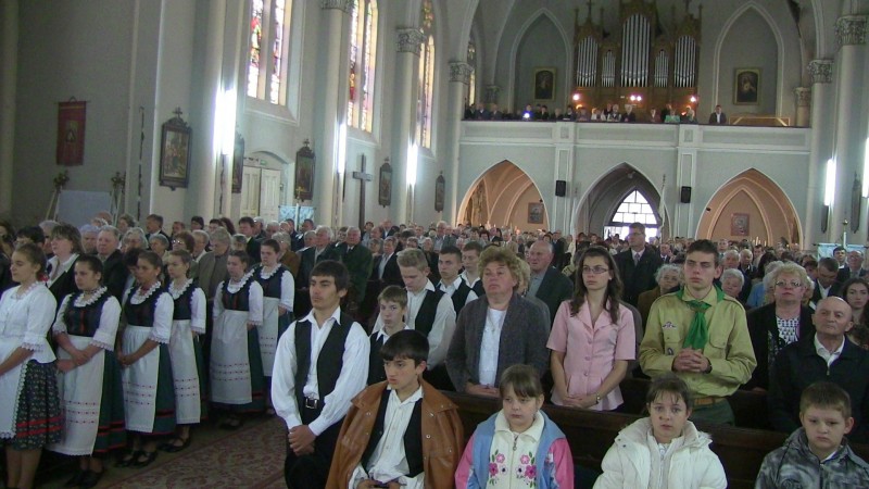 A vasárnapi program délután ünnepi szentmisével kezdődött, s amelyen a "házigazda" ft. Czeglédi Ferenc plébános mellett több környékbeli és magyarországi pap is jelen volt, köztük Király Árpád Marosi főesperes és Pécska két papszülötte: ft. Kocsik Zoltán ifjúsági lelkész, a temesvári Gerhardinum Római Katolikus Teológiai Liceum spirituálisa – aki celebrálta a misét és gyönyörűen prédikált a Szentháromság jelentőségéről és közelségéről a mindennapokban - és ft. Czank Gábor gyomaendrődi plébános, akit nagy számú zarándok kísért el Pécskára. A szentmisén zsúfolásig megtelt a templom, jelen volt Antal Péter polgármester, helyi és megyei tanácsosok – köztük Bölöni György.