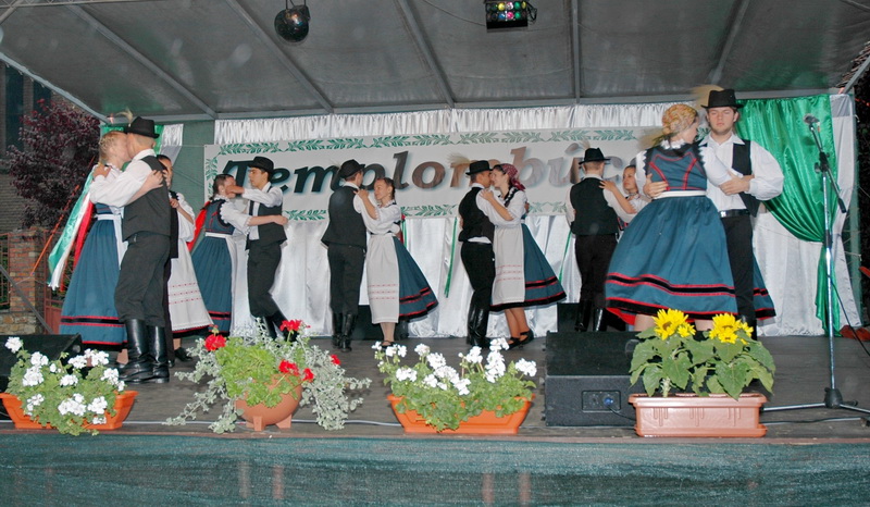 Zumba – azaz aerobic elemek és latin ritmusok ötvözéséből álló – tánccal vette kezdetét szombat este negyed kilenckor a pécskai Szentháromság római katolikus templom búcsújának programja. A folyamatosan érkező közönség előtt negyed órán keresztül, megállás nélkül táncolt a Kocsik Vali vezette tucatnyi felnőtt és gyermekkorú táncosnőből álló csapat. Őket követte az aradi Csiky Gergely Főgimnázium társastánc csoportja. Az öt pár – melyből az egyik pécskai diákokból áll – a stílusok közötti gyors váltásokkal és tartásával érdemelte ki a padokon és sátrak alatt helyet foglaló, vagy álló nézők tapsát. Pár perces behangolás után, 9 órákor vette kezdetét a csíkszeredai Role együttes koncertje, akik csaknem kilenc év után tértek vissza Pécskára fellépni. Saját, díjnyertes dalaikból és ismert számokból álló műsoruk sajnos a tervezettnél rövidebbre sikeredett, hiszen mire a közönség is „bemelegedett” volna, 10 óra körül vihar vetett véget a szombat esti programoknak. A koncert fele és az után tervezett szabadtári diszkó így elmaradt.