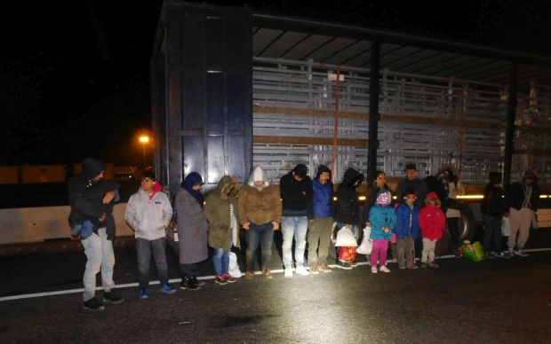 A magyar és a román rendőrök tizenkilenc migránst találtak egy kamionban a csanádpalotai autópálya-határátkelőn – tájékoztatta a Csongrád Megyei Rendőr-főkapitányság szóvivője pénteken az MTI-t. Huber Krisztián közölte, a rendőrök hajnali 4-kor vizsgáltak át egy bolgár kamiont, s a jármű rakterében 19, Magyarország területére bejutni szándékozó migránsra bukkantak. A magát szír, illetve iraki állampolgárnak valló határsértőkkel szemben a román hatóságok folytatják le az eljárást – közölte a szóvivő.