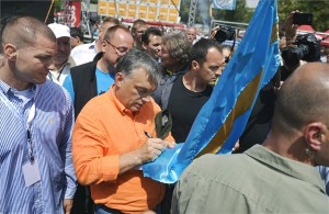 A Realitatea TV híre szerint két fiatalember paradicsommal dobálta meg Orbán Viktor magyar kormányfőt szombat délután Tusnádfürdőn. A fiatalok azután dobálták meg a magyar miniszterelnököt, hogy végighallgatták a Bálványosi Szabadegyetemen és Diáktáborban tartott előadását és a kérdésekre adott válaszait. A két fiatalt a csendőrök előállították és pénzbüntetést róttak ki rájuk. A dobálók nem tudták megindokolni, hogy miért folyamodtak a vélemény-nyilvánítás ezen módjához.
