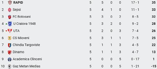 Az alsóházban a Sepsi OSK az utolsó pillanatokban szerzett góllal nyert szombaton az UTA ellen, így ideiglenesen az élre állt. A biztos kieső a büntetőpontokkal sújtott Medgyes és a Clinceni, az osztályozót jelentő 6. hely elkerüléséért a Dinamo és a Chindia verseng.